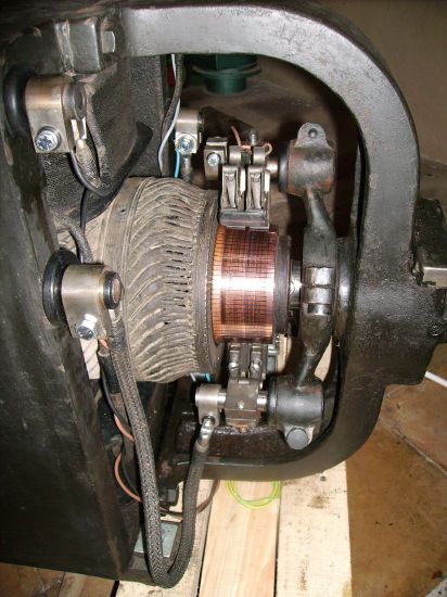 Dieser Gleichstrommotor, hergestellt von den Siemens-Schuckert-Werken in Berlin, wurde 1908 in Burgfey aufgestellt. Durch Treibriemen war er mit der Pumpe verbunden. Seine Leistung beträgt 3,5 PS. Im Juni 2006 wurde er von Udo Reith aus Euskirchen restauriert und ist seitdem wieder betriebsbereit.